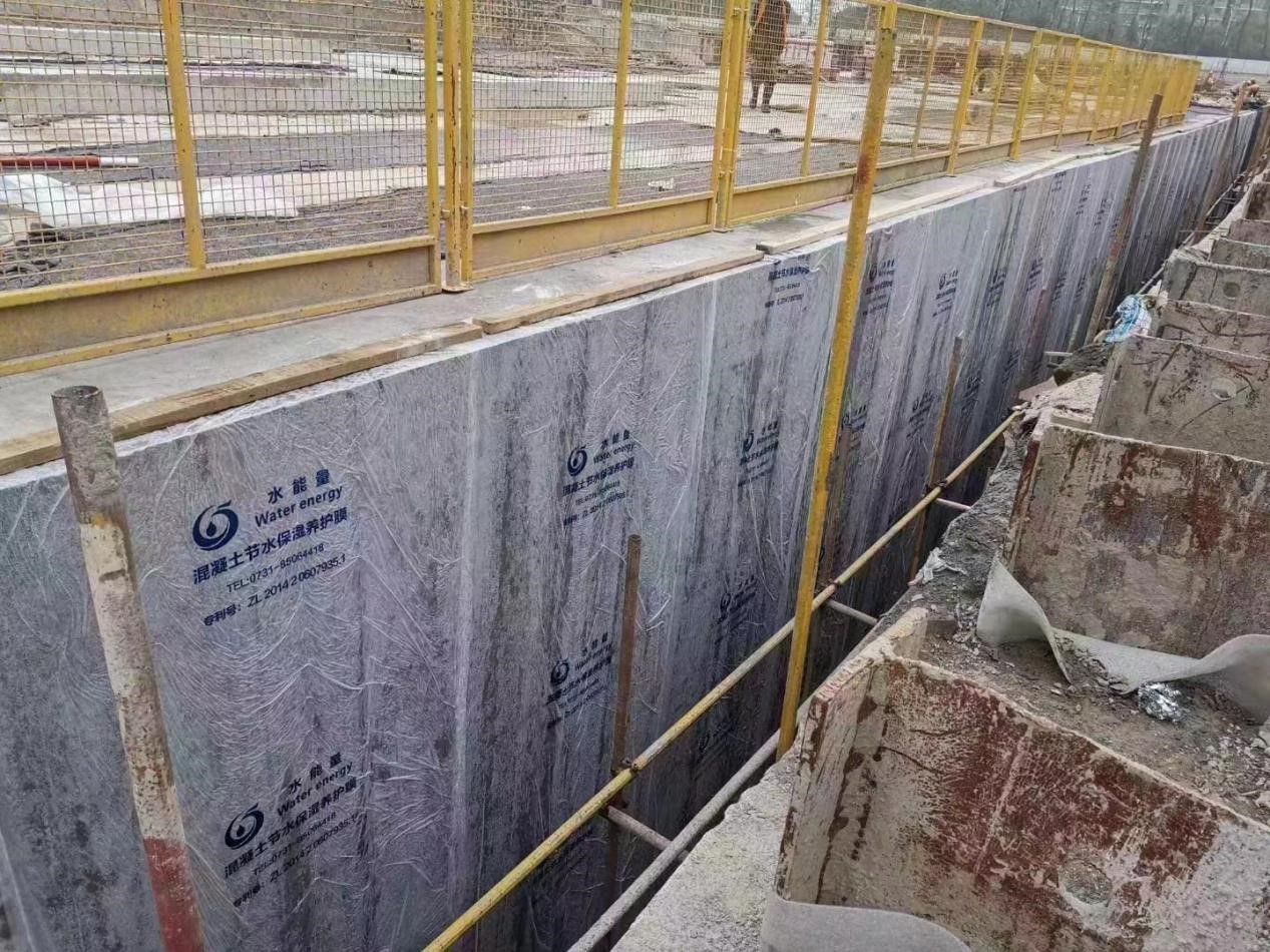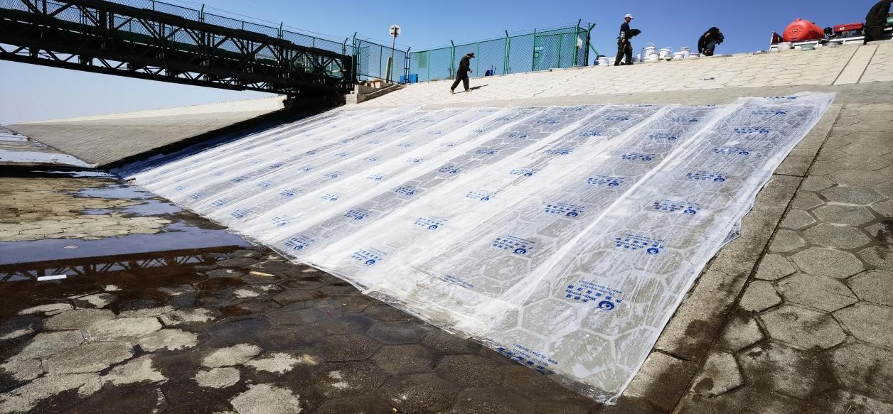 混凝土節(jié)水保濕養(yǎng)護膜,是以新型可控高分子吸水材料為核心,以塑料薄膜為載體,通過設備加工復合而成的卷材產品。其中高分子材料可吸收自重200倍的水分子, 吸水膨脹后變成透明的晶狀體,把液態(tài)水變成固態(tài)水,每平方米養(yǎng)護膜可蓄水0.5KG,成為一個固態(tài)的微型水庫,然后通過毛細管的作用向混凝土養(yǎng)護面滲透, 同時不斷吸收混凝土在水化過程中產生的蒸發(fā)水,因此在一個養(yǎng)護期內總能保持混凝土表面濕潤。